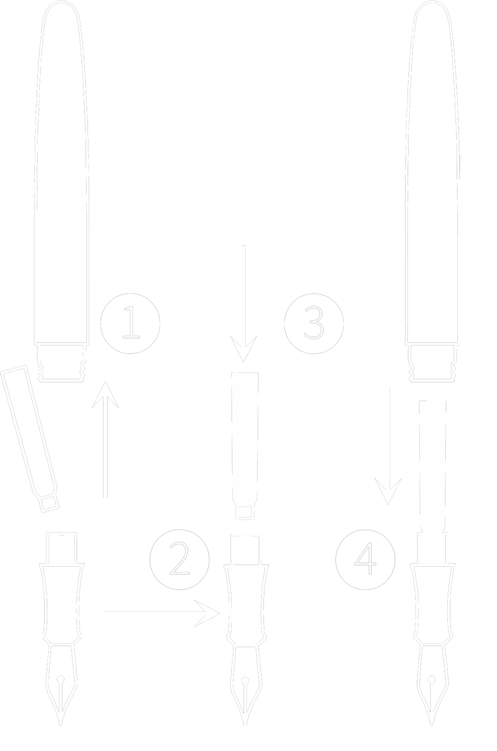 4. Screw the body onto the grip section. Test the pen by writing a few lines, the ink will flow after a few strokes